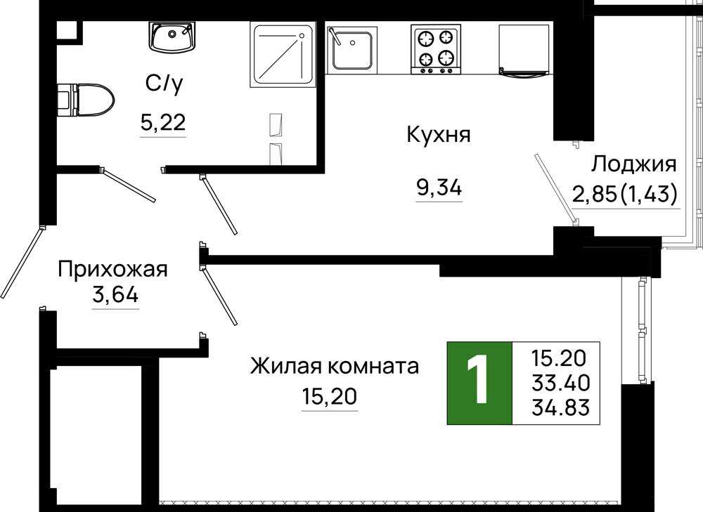Продается 1-комн. квартира, площадью 34.83 м2 в монолитно-кирпичной новостройке. Возможен вариант покупки с использованием ипотечных средств, есть рассрочка, возможна покупка с использованием материнского капитала, есть военная ипотека.