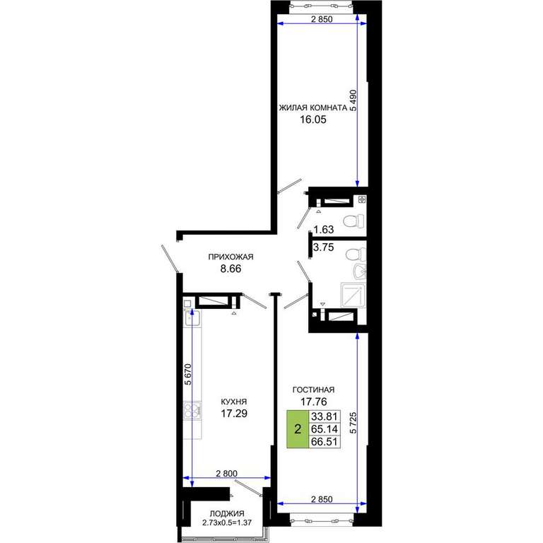 - 66.51 м2