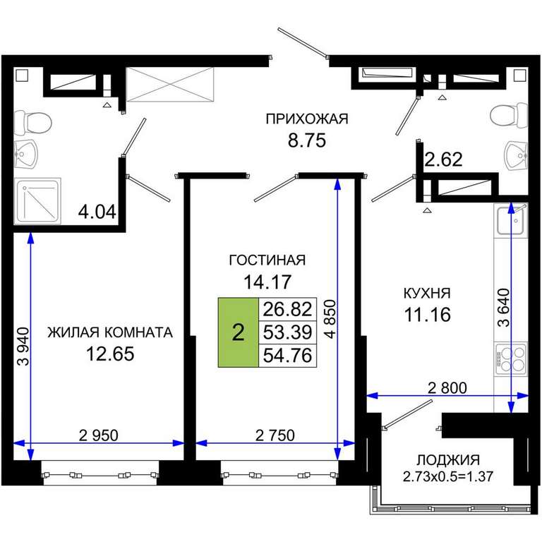 - 54.76 м2