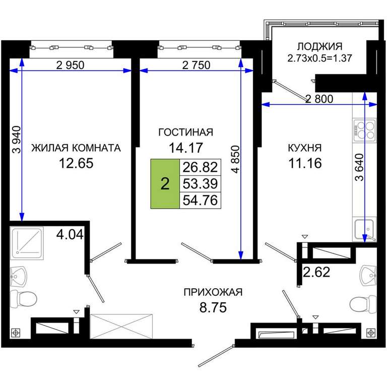 - 54.76 м2