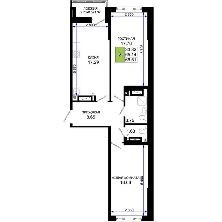 - 66.51 м2