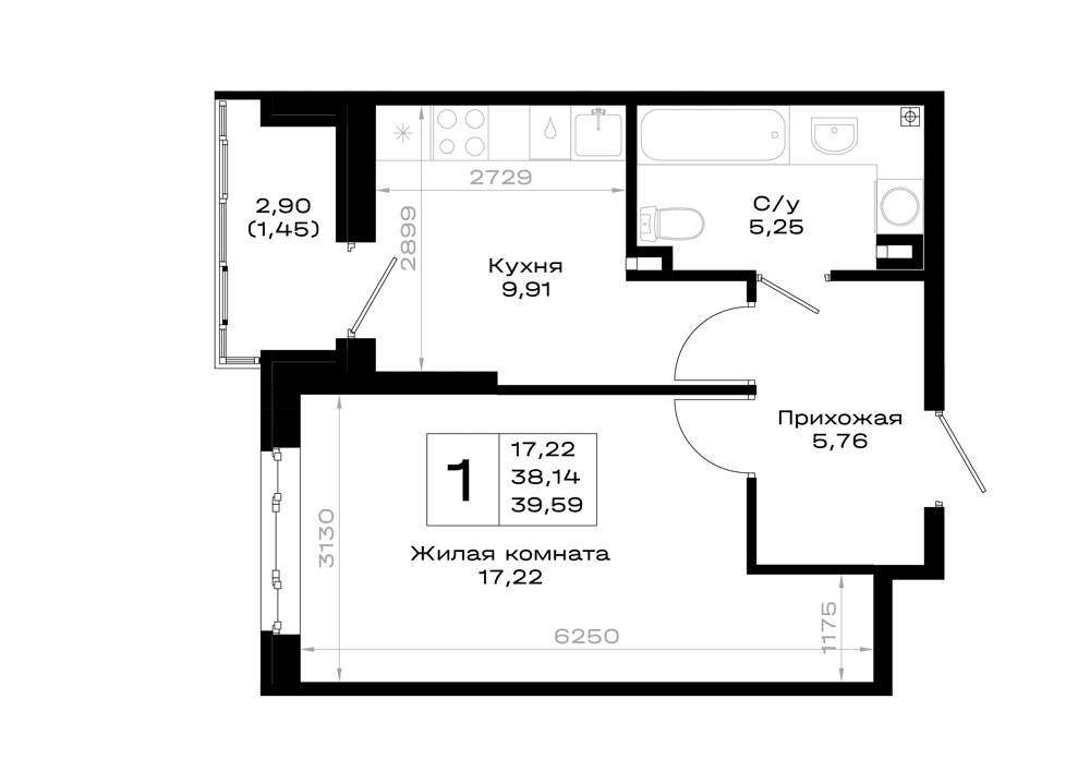 Жилая площадь 17.22 м2, кухня 9.91 м2, предчистовая отделка, комнаты изолированные.