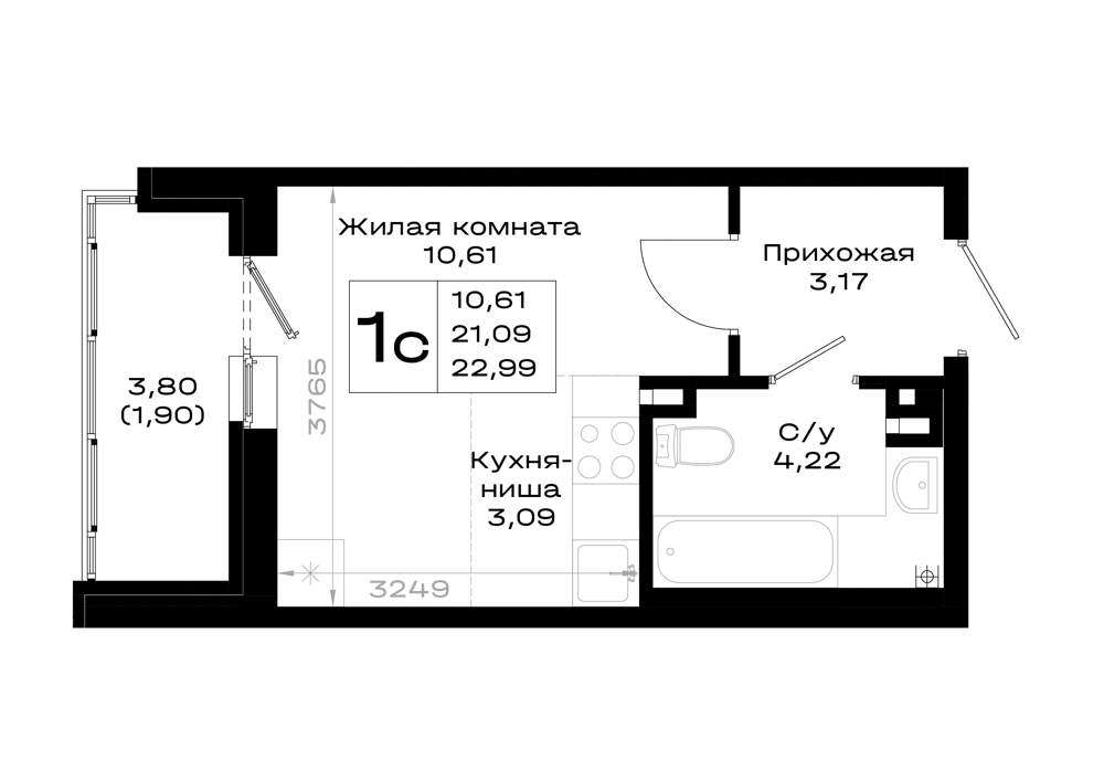 - 22.99 м2