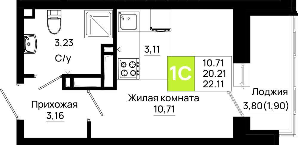 - 22.11 м2
