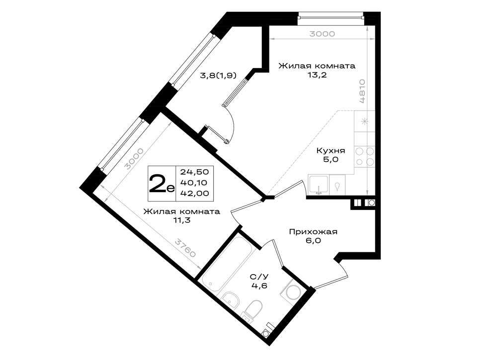 Жилая площадь 24.5 м2, кухня 5 м2, квартира без отделки.