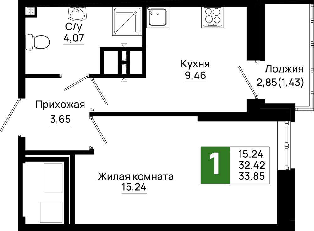 Продается 1-комн. квартира, площадью 33.85 м2 в монолитно-кирпичной новостройке. Возможен вариант покупки с использованием ипотечных средств, есть рассрочка, возможна покупка с использованием материнского капитала, есть военная ипотека.