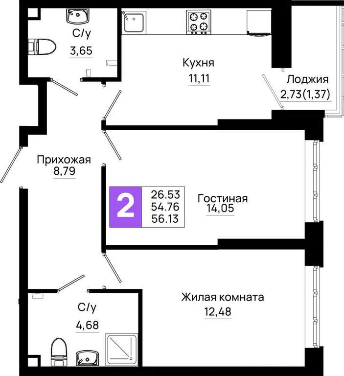 - 56.13 м2
