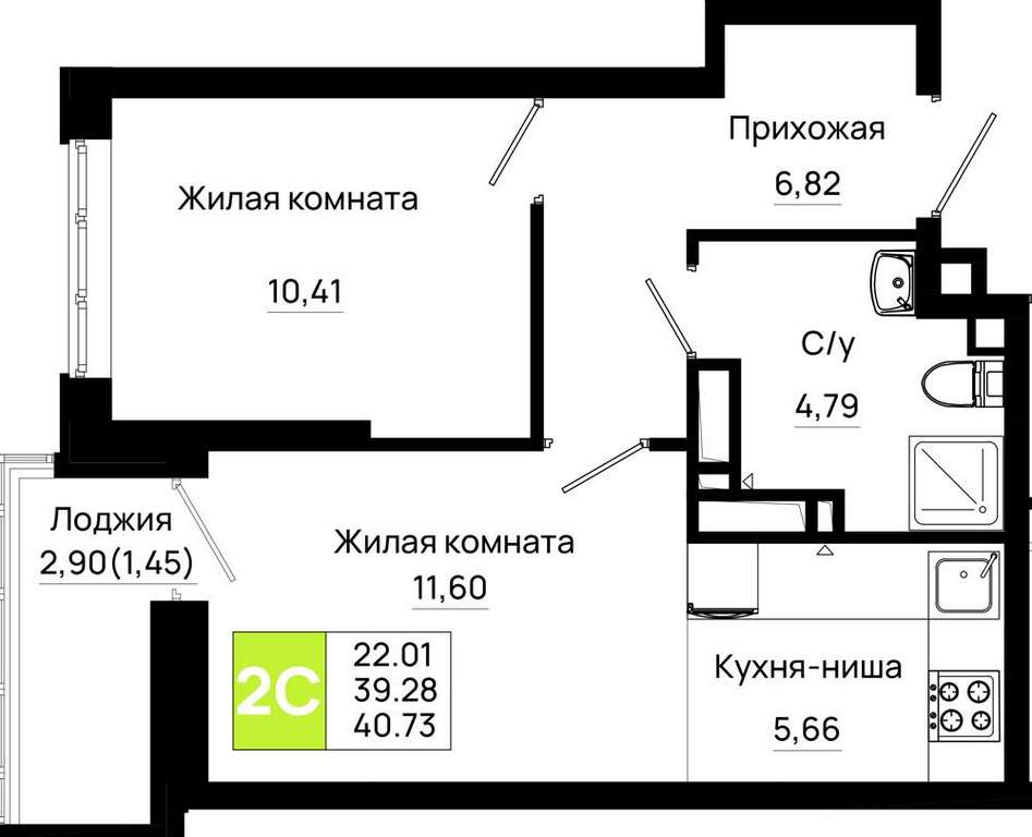 - 40.73 м2