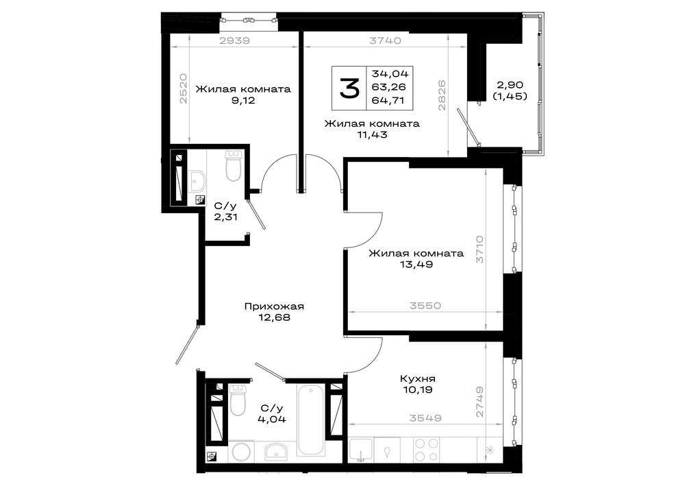 Продается 3-комн. квартира, площадью 64.7 м2 в монолитно-кирпичной новостройке. Возможен вариант покупки с использованием ипотечных средств, есть рассрочка, возможна покупка с использованием материнского капитала, есть военная ипотека.