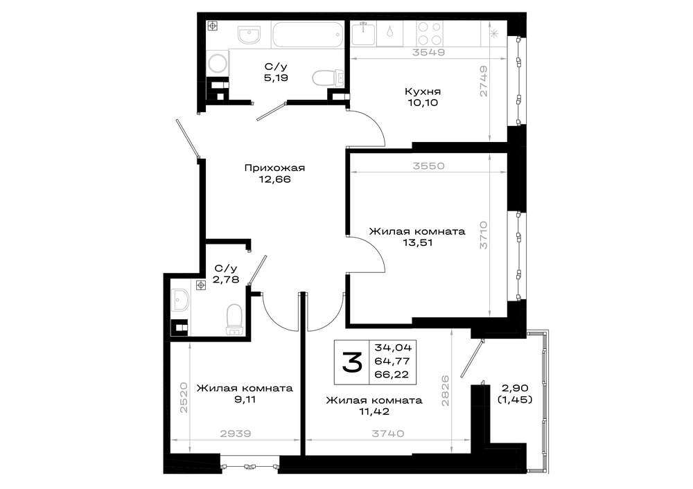 - 66.22 м2