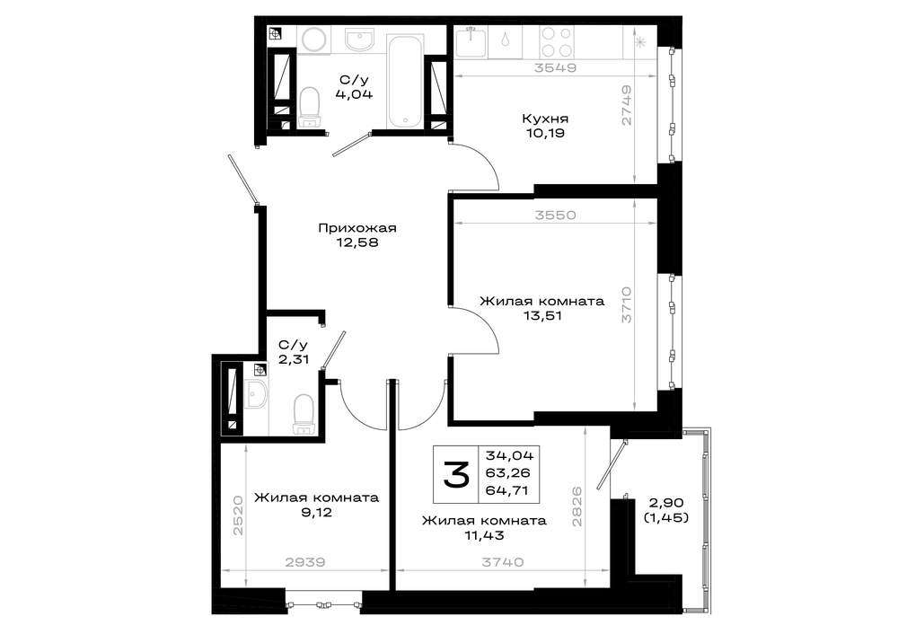 Продается 3-комн. квартира, площадью 64.7 м2 в монолитно-кирпичной новостройке. Возможен вариант покупки с использованием ипотечных средств, есть рассрочка, возможна покупка с использованием материнского капитала, есть военная ипотека.