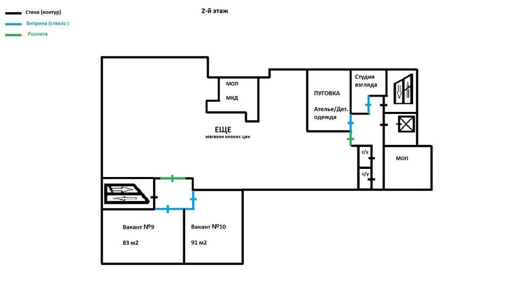 Общая площадь: 593 кв. м2 ( второй этаж торгового комплекса)