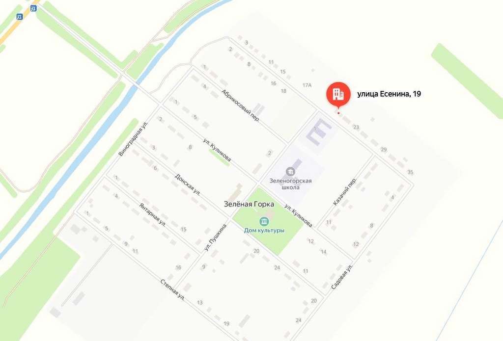 | Адрес | Зеленая Горка п., Сергея Есенина ул.Объект на карте |